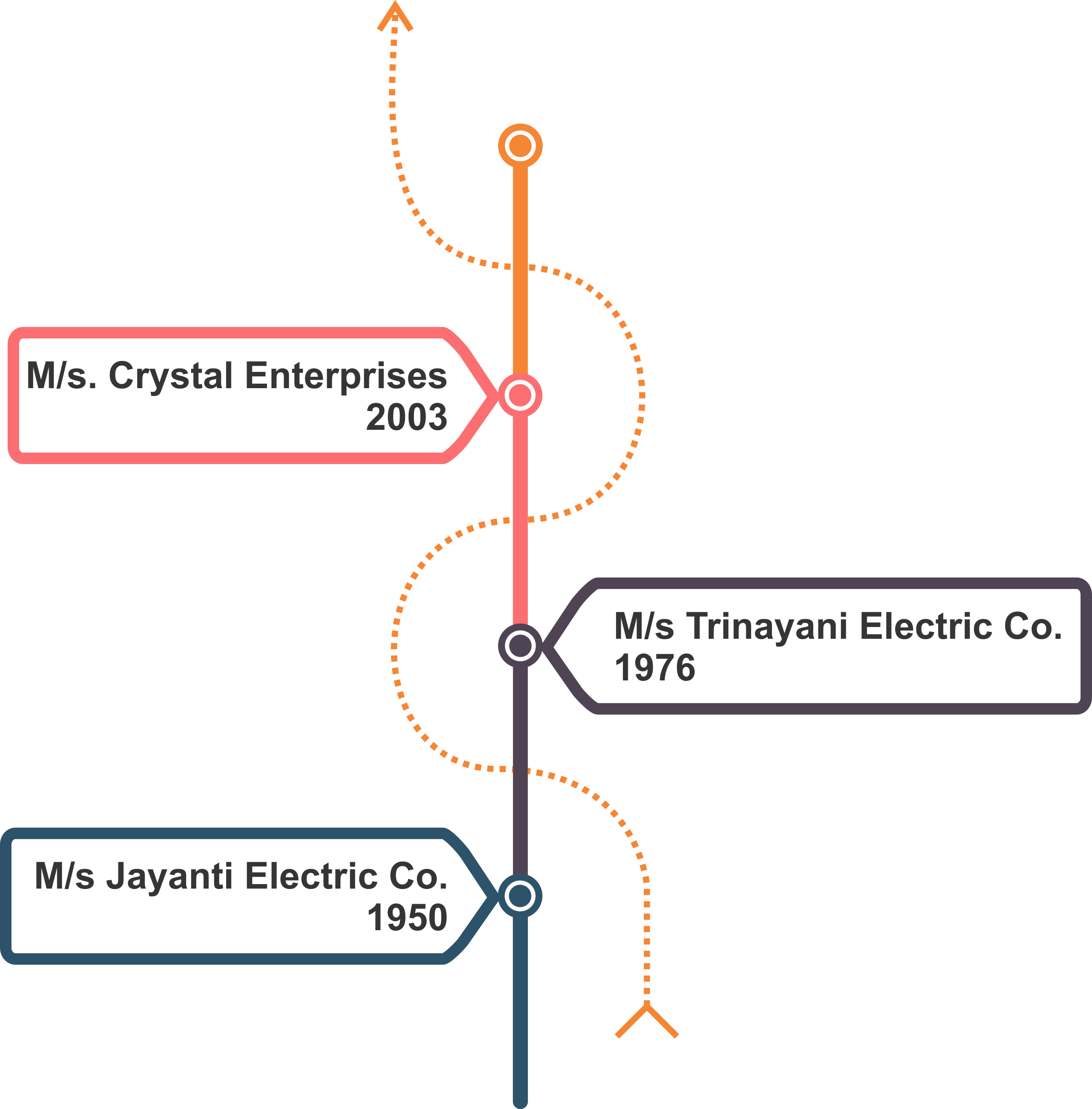 The company was founded by Shri Gour Gopal Paul in the year 1950. Initially known as Jayanti Electric Co., the entity had grown to a company of excellent repute. In 1976 the company was renamed as Trinayani Electric Co. which subsequently expanded and a new entity was added to the group in 2003, Crystal Enterprise. The past 70 years have been incredible for Trinayani Group and we look forward to what the future holds in store for our organization.